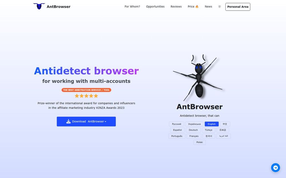 AntBrowser 是一款面向多账号管理与反指纹需求的专业浏览器。它通过对浏览器指纹、网络环境和设备特征的深度伪装与隔离,帮助个人和团队在 Facebook、Google、TikTok、Amazon、eBay、加密交易所、分类信息平台等多种服务上安全运行大量账号,降低被封禁或验证的风险。