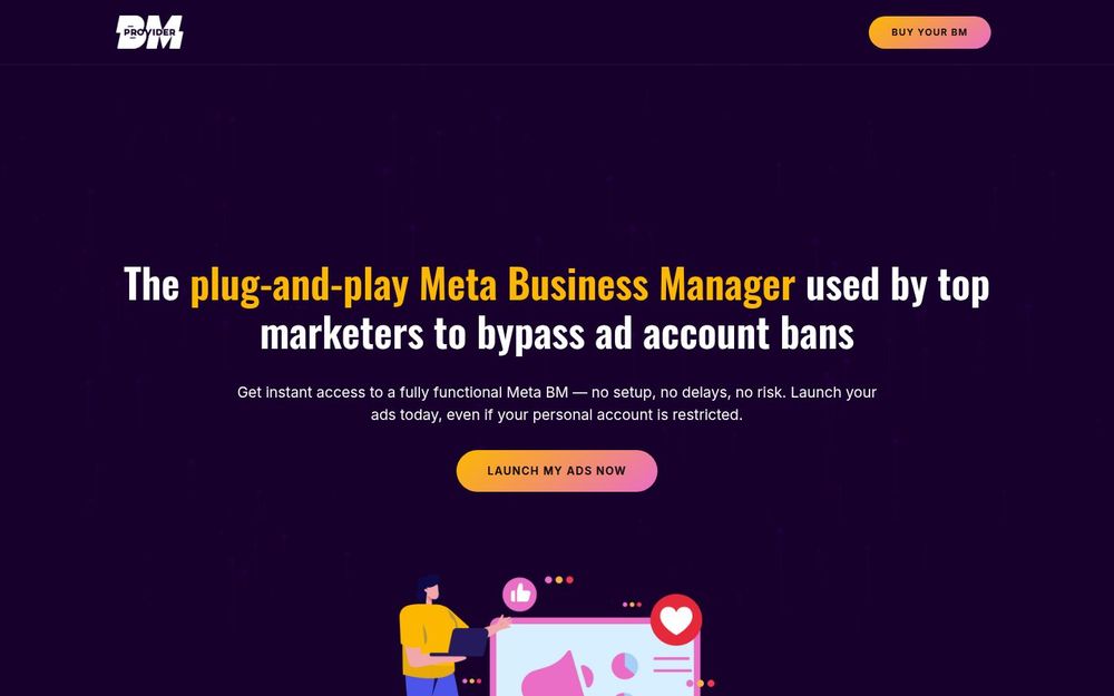 BM 提供商(BM Provider)是一家针对 Facebook/Meta 广告投放所提供的即用型 Business Manager(BM)和账号服务平台。其定位为“plug-and-play”的解决方案,帮助广告主在个人账户受限或需要快速扩量时,直接获取一个已配置、可立即投放的高信任度 BM。服务强调快速交付、完全所有权与合规创建,并提供多种日预算档位以满足不同规模的广告需求。