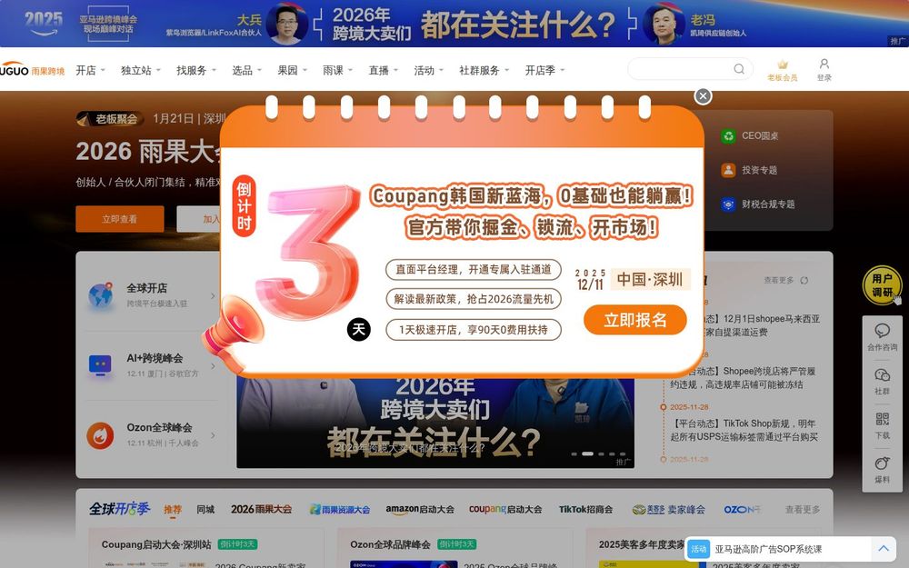 雨果跨境(CIFNEWS)是一家专注于跨境电商生态的产业互联网平台,致力于连接平台官方、服务商与中国卖家,提供全球开店通道、服务市场、行业资讯、培训课程与线下峰会等多维度服务。平台覆盖亚马逊、TikTok、Coupang、Ozon、美客多、Shopee、沃尔玛等主流和新兴海外平台,同时汇聚物流、收款、税务、知识产权与营销等生态服务资源,帮助卖家从0到1、从选品到规模化运营实现出海落地。