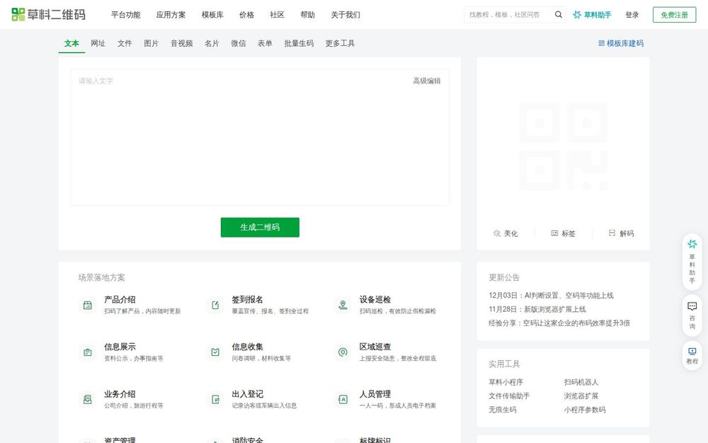 草料二维码(cli.im)是一款面向个人、团队和企业的二维码生成与管理平台。它不仅支持基础的二维码生成与下载,还提供二维码美化、模板页面制作、批量生码、标签排版与二维码内容的实时更新与数据统计。平台强调无代码落地、微信生态内便捷使用和多端协同,适合从简单信息展示到复杂业务流程的扫码管理需求。