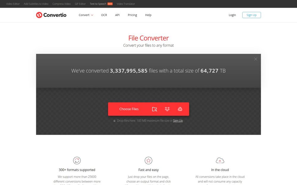 Convertio 是一款面向大众与开发者的在线文件转换工具,主打“无需安装、跨平台、快速转换”的体验。用户可以通过浏览器上传文件并选择目标格式,所有转换任务都在云端完成,不占用本地计算资源。Convertio 宣称支持超过 300+ 文件格式 和 25600 多种转换组合,适用于文档、图片、音视频、归档和电子书等多种文件类型的互转。