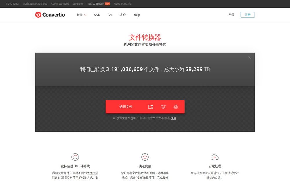 多格式支持: Convertio 支持文档、图片、音频、视频、压缩包、电子书等多种文件类型,涵盖超过 300 种格式与 25600 多种转换方式,能够满足大多数常见与专业的格式转换需求。