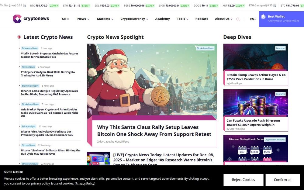 Cryptonews 是一个面向全球的加密货币新闻与分析网站,致力于为读者提供及时、全面且多样化的区块链与加密资产内容。平台涵盖市场快讯、深度专题、研究报告、价格分析以及教育型内容,旨在帮助用户理解加密市场的动态、风险与机会。