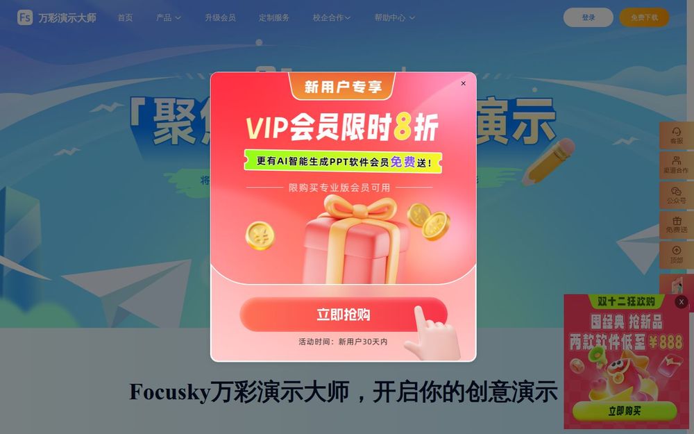 Focusky(万彩演示大师)是一款面向个人、教育和企业用户的创意演示软件。它将传统线性幻灯片演示升级为基于无限画布的非线性可视化表达平台,融合动画、3D 背景、交互组件和 AI 助手,帮助用户以更直观、生动的方式传达信息与观点。Focusky 强调创意呈现与易用性,提供丰富模板与素材库,支持多种导出格式,便于分享与发布。