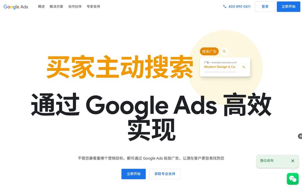 Google Ads(谷歌广告)是由 Google 提供的全面线上广告投放平台,覆盖搜索、展示、购物、视频与应用等多种广告类型。网站重点介绍了如何通过多渠道组合和 AI 驱动的自动化技术,让企业在合适的时机、合适的平台向潜在客户展示广告,从而提升流量、转化与品牌影响力。平台同时提供新用户赠金优惠、合作伙伴计划与专业支持,帮助不同规模的广告主快速启动并优化广告投放。