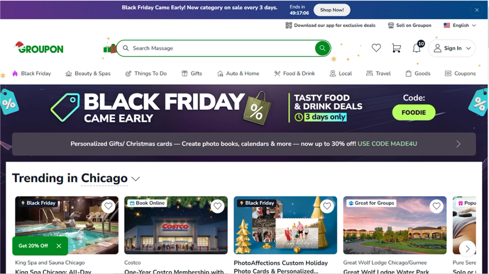 - 折扣力度通常3-7折,很多热门餐厅平时根本订不到的位置,用Groupon券瞬间秒约。