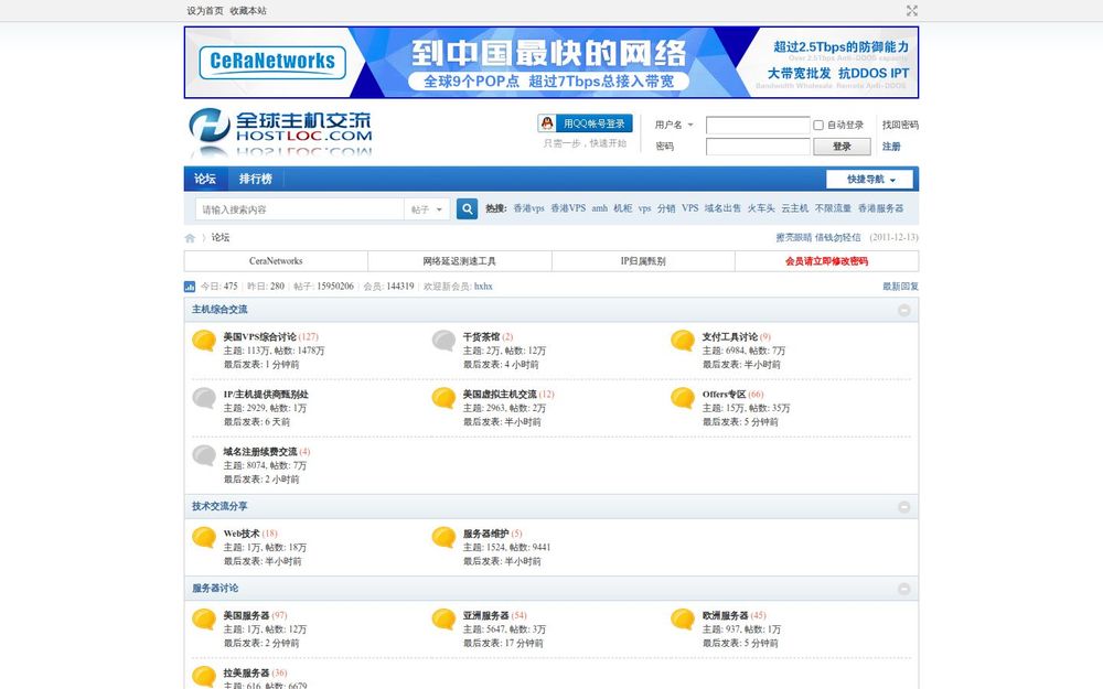 全球主机交流论坛(Hostloc)是以主机、VPS、服务器与域名为核心话题的中文社区平台。网站基于 Discuz! X3.4 搭建,界面包含首页公告、版块导航、快捷登录与注册入口,面向主机用户、站长、运维和产品提供商,旨在通过社区互动分享测评、优惠信息与技术经验。