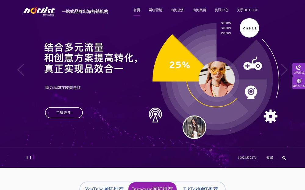 热点营销(Hotlist)是一家面向出海企业的海外整合营销服务商,专注于通过海外红人/KOL推广、社媒代运营、TikTok营销、以及海外媒体PR,为中国品牌打开国际市场。网站强调本土化执行与数据化评估,覆盖欧美、中东、东南亚等主要市场,并宣称拥有海量红人资源与丰富的行业实战经验,适配电商、消费电子、软件App、母婴家居、时尚美妆等多类目需求。