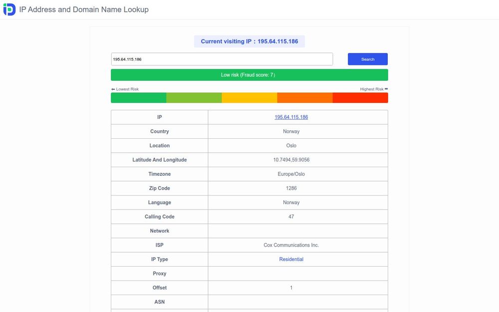 - 风险评估与欺诈得分: 给出一个简洁的风险等级或欺诈评分(例如低风险到高风险),用于初步筛查可疑 IP。
