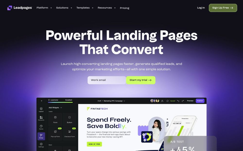 Leadpages 是一款专注于落地页与潜在客户转化的 SaaS 平台,帮助企业、营销团队和代理商在无需编写代码的前提下,快速构建、发布并优化高转化的页面。平台强调以数据驱动的优化能力,结合模板库、A/B 测试与 AI 助手,缩短从创意到投放的周期,提高潜在客户收集与转化效率。