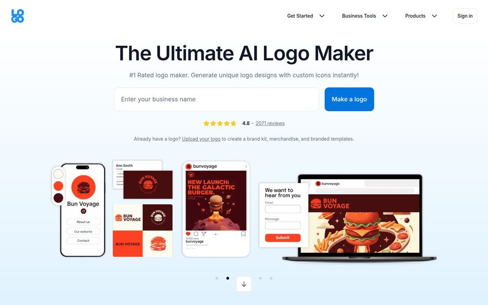 LOGO.com 是一款面向个人创业者与中小企业的在线 AI 标志生成器与标志编辑器。通过简单输入公司名称、口号与关键词,平台会即时生成数百种可编辑的 logo 方案,用户可以在可视化编辑器中对图标、字体、颜色、布局等进行自由调整,并导出多种格式的高分辨率文件。网站同时提供品牌套件、社交媒体素材和周边商品打印功能,帮助用户从设计到落地一站式完成品牌建立。
