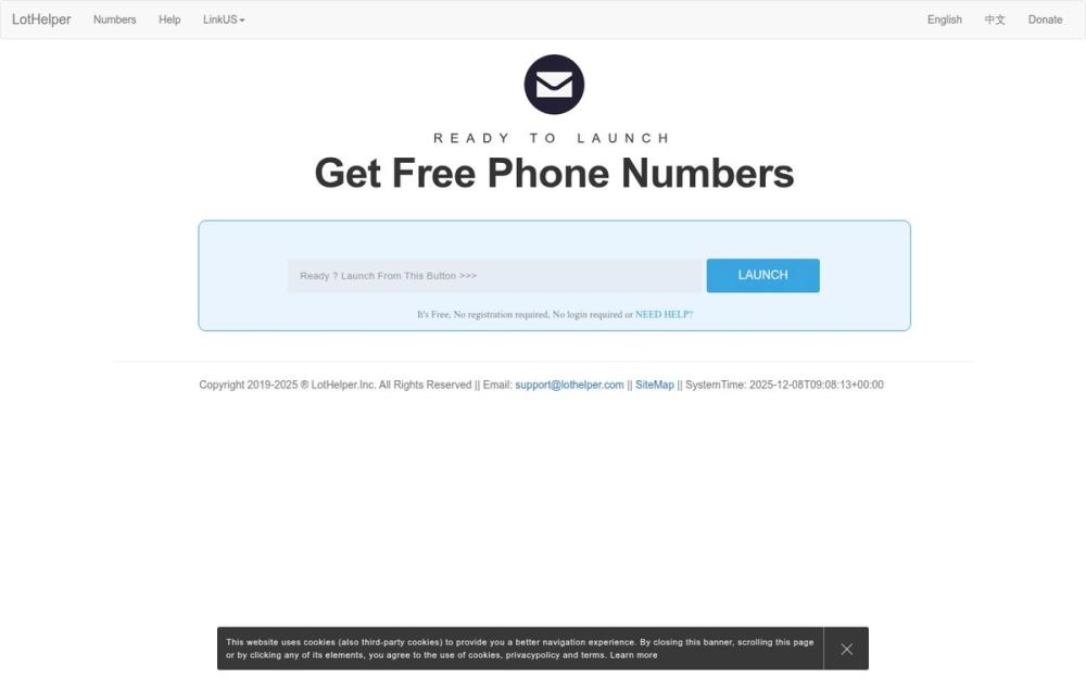 LotHelper 是一款面向需要临时接收短信验证码的用户而设计的在线工具。其核心理念是降低使用门槛,提供“免费、免注册、免登录”的服务体验,让用户可以快速获取临时手机号并在线查看收到的短信。网站同时声明使用 cookies(包括第三方 cookies)以优化导航与使用体验,并提供隐私政策与帮助页面以便用户了解服务条款和常见问题。