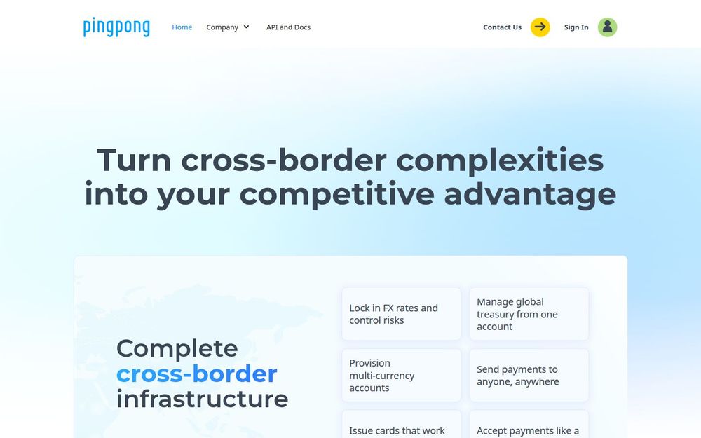 PingPong 是面向企业的跨境支付与全球资金管理平台,旨在将复杂的国际结算、外汇与合规体系转化为可直接使用的基础设施。平台支持从本地收款、外汇兑换到全球出款与卡片发行的一站式服务,通过可定制的 API 与端到端解决方案帮助客户在不同市场快速扩展与落地。