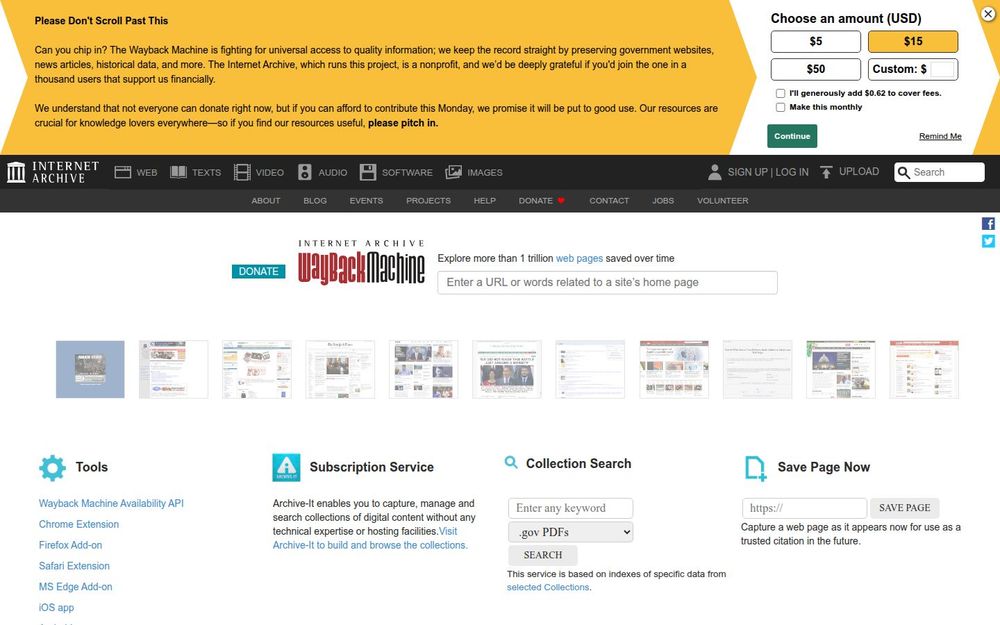 开发者与机构工具: 提供 Wayback API 与可订阅的 Archive-It 服务,便于机构构建与管理自有数字收藏,支持批量采集与索引。